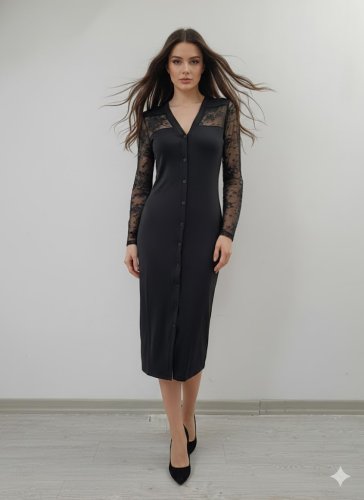 Kadın uzun kollu v yakalı tüllü kısa ithal krep mini elbise