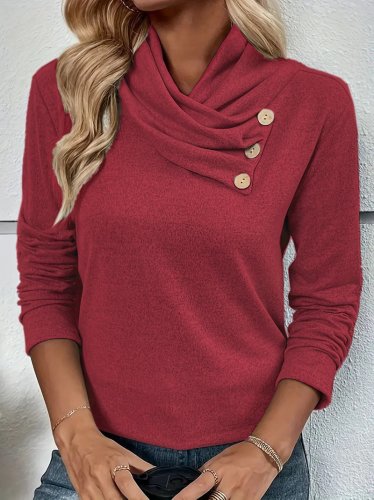 • Kadın uzun kollu kapişon yaka düğmeli yumoş bluz