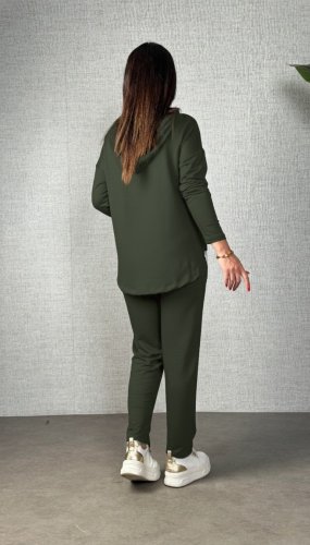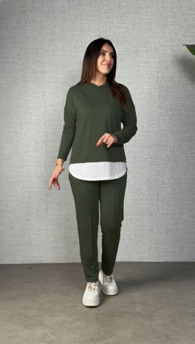 • Kadın uzun kollu kapşonlu bağcıklı viskon iki iplik bluz ve pantolon ikili takım