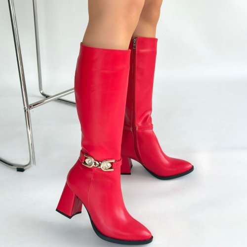 • Mooni Kırmızı Cilt Topuklu Çizme